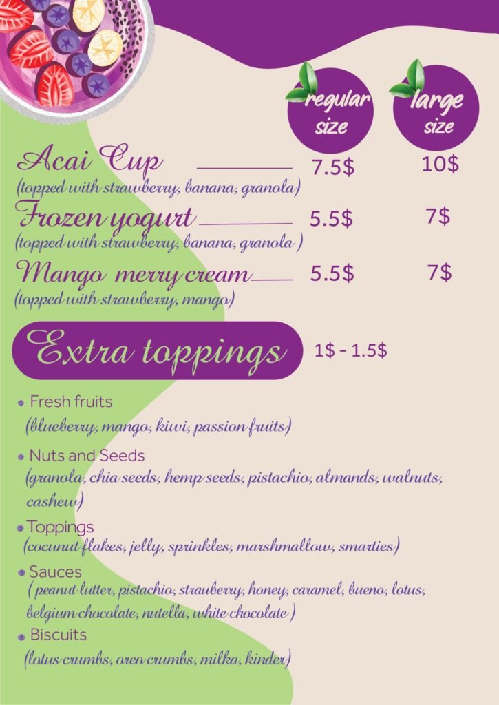Acai Menu